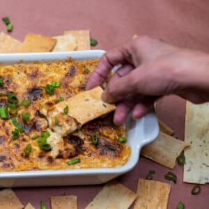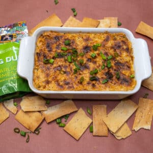 Make this delicious shrimp dip with my Garlic Parmesan Wing Dust for an amazing flavor. You can easily bake this in the oven, but I love cooking it on the grill for extra smokiness and flavor. This is easy, super cheesy, and you’ll get some shrimp in every bite!